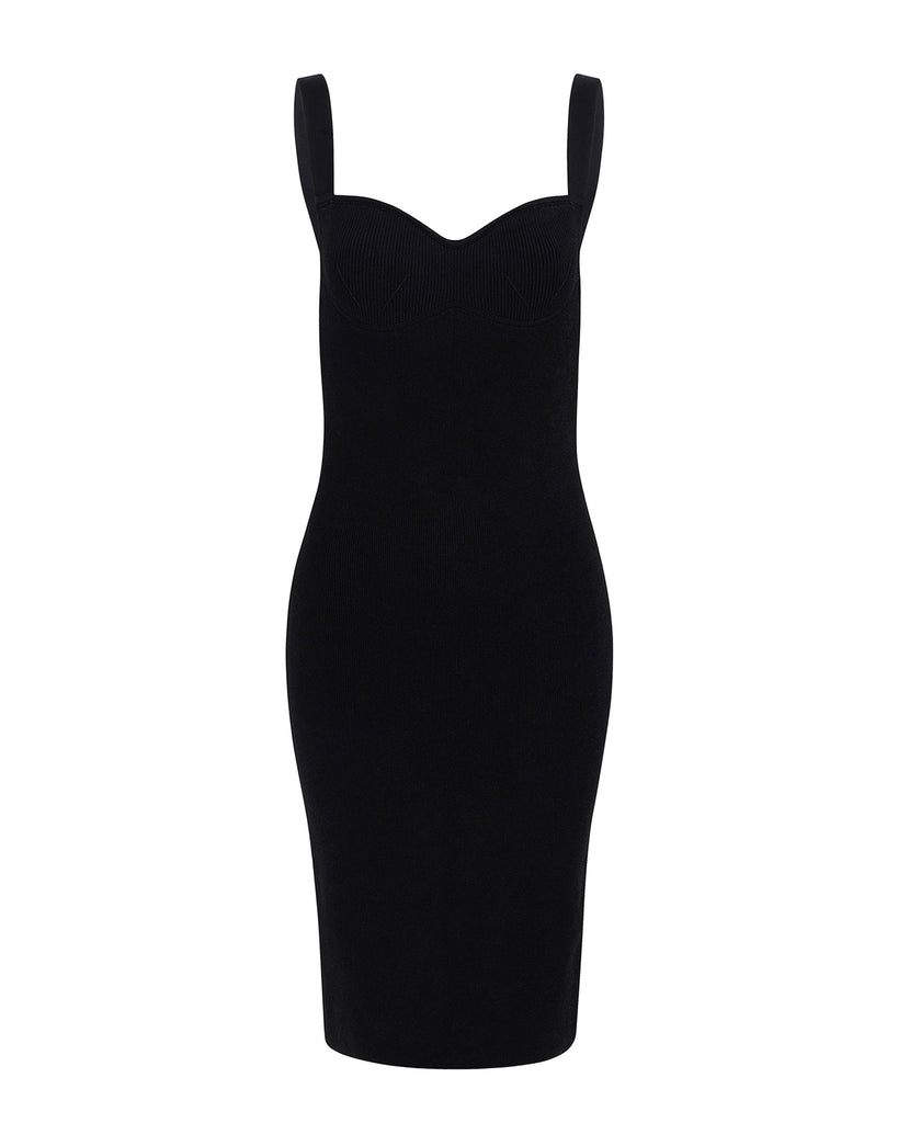 AMBER Sweetheart Neckline Midi Dress - Black