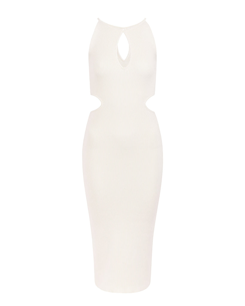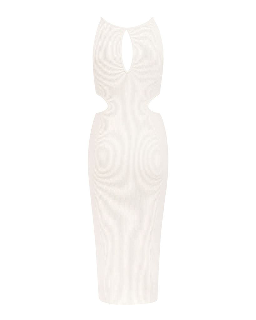 CLAUDIA Ribbed-Knit Cutout Dress White